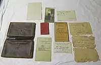 A wallet is a flat case or pouch, often used to carry small personal items such as physical currency, debit cards, and credit cards; identification documents such as driving licence, identification card, club card; photographs, transit pass, business cards and other paper or laminated cards. Wallets are generally made of fabric or leather, and they are usually pocket-sized and foldable.