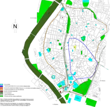 The Walls of Seville (Spanish: Murallas de Sevilla) are a series of defensive walls surrounding the Old Town of Seville. The city has been surrounded by walls since the Roman period, and they were maintained and modified throughout the subsequent Visigoth, Islamic and finally Castilian periods. The walls remained intact until the 19th century, when they were partially demolished after the revolution of 1868. Some parts of the walls still exist, especially around the Alcázar of Seville and some curtain walls in the barrio de la Macarena.