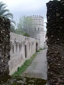 The gates of al-Andalusian cities were not built with the road axis but were angled to make it as difficult as possible the siege. Thus, the attackers had to cross several gates and courtyards before entering the city. From the heights defenders fired arrows and poured boiling oil on the attackers.[3]