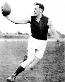 - ↑ Dick Reynolds. "Carlton win premiership in last few seconds". The Argus. Melbourne, VIC. p. 18.