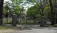 Walnut Grove Cemetery is a historic cemetery at Grove and Railroads Streets in Methuen, Massachusetts. The still active cemetery sits on 14 acres (5.7 ha) and is privately funded with a board of directors. The cemetery was established in 1853, and was laid out in the then-popular rural cemetery style. The Tenney Memorial Chapel given by the Daniel G. Tenney in 1927 as a memorial to his parents Charles H. Tenney and Fannie Haseltine (Gleason) Tenney.[2] The chapel was designed by architect Grosvenor Atterbury. The earliest burial is estimated to be about 1850; whereas the number of burials before 1960 is unknown, there have been 896 burials since 1960.
