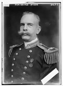 Rear Admiral Walter L. McLean (1855 – March 21, 1930) was the American commander of the Norfolk Naval Shipyard from November 25, 1915, until February 4, 1918. Under his command, the Shipyard was the holding area for various German vessels which had put into port during World War I, and stayed in a somewhat limbo status—the United States had not entered the war and so could not commandeer the ships, but then neither could the ships be allowed to depart and resume attacks on Allied shipping. The course of action was therefore to keep the foreign ships and their crews as "guests" of the United States for years.