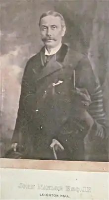 In 1803, a relative, William Atherton of Green Park, Trelawny parish died childless and left a third of his estate to Colonel John Joseph Atherton of Walton Hall.[27] He purchased Street Court, a manor in Kingsland, Herefordshire. When he disposed of Walton Hall, he became a member of the Herefordshire Agricultural Society[28] and sold Walton Hall at auction in 1802 to Liverpool businessman, Thomas Leyland.[29] This date of sale is inconsistent with other sources that refer to 1803[30] and 1804.[1] A document in the national archives refers to John Joseph Atherton being the former owner of Walton Hall in 1808.[31]