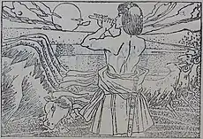 Wang lived in Tibet in the 1980s, where he worked as an art director for the military district of Tibet. In 1982, he created the illustrations for two picture books recounting the Tibetan folklores, The Story of Akhu Tönpa and The Swan. The latter won a second prize in the Exhibition of Fine Arts of the Tibet Autonomous Region.[1] In 1986, with The Eternity, a wood carving painting, he was awarded the Creative Excellence Award in the fifth Exhibition of Fine Arts of Tibet;[2] and several of his sketches were published in the Tibetan newspaper Lhasa Evening, in the same year.[3]