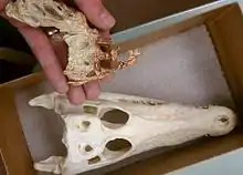W. kirpachi holotype and paratype with modern Crocodylus porosus skull for comparison.