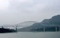 The Yiwan Railway Wanzhou Yangtze River Bridge is an arch bridge in Wanzhou District, Chongqing, China.[1] The bridge was completed in 2005 and carries the Yichang−Wanzhou Railway across the Yangtze River. The bridge spans 360 metres (1,180 ft) making it one of the longest arch bridges in the world.