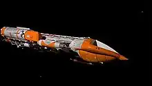 ![]() The Mark IX Hawk makes its sole appearance in this episode. The model was partly re‑painted orange to distinguish it from the Eagles.[1] | |