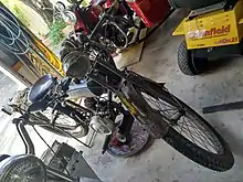 A 150 cc machine was available (presumably the 1.5 hp machine). It had a foot change.[75][76] A 250 cc machine was available (presumably the 2.5 hp machine) and a foot change was either standard or an option.[66] A 2.25 hp machine is referred to in a classified advert, but this seems unlikely to be reliable.[66] |