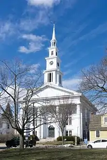 The Warren United Methodist Church and Parsonage are a Methodist church and house at 27 Church Street in the center of Warren, Rhode Island. The church was started in 1789 under the Rev. Daniel Smith and was the first Methodist congregation in Rhode Island, and the second in all New England. The building is a Greek Revival structure with a full temple front built in 1844 by Fall River, Massachusetts architect Perez Mason.[2] The parsonage is a two-story Italianate structure built by the congregation in 1858. It was designed by the Warren firm of Hoar & Drown and built by the related firm of Hoar & Martin.[3]