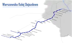 Warsaw Commuter Railway (Polish: Warszawska Kolej Dojazdowa, WKD) is a light rail commuter line in Poland's capital city of Warsaw. The line, together with its two branches, links Warsaw with the municipalities of Michałowice, Pruszków, Brwinów, Podkowa Leśna, Milanówek and Grodzisk Mazowiecki to the south-west of Warsaw.