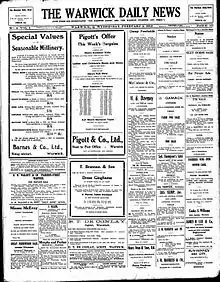 The Warwick Daily News is an online newspaper serving Warwick, Queensland, Australia.[1] The newspaper is published by The Warwick Newspaper Pty Ltd and owned by News Corp Australia.[2]