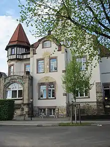 The Königshof, formerly Strehlener Hof, is known for its ballroom with Neo-Renaissance frescos and decorative stucco.[1] Built in the Art Nouveau style, the Villa Wasa dates from 1903. Under the German Democratic Republic, the building served as the August Bebel Cultural Centre. It has recently been used as a restaurant.[2][3]