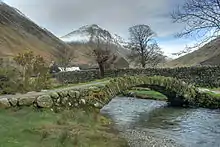Wasdale Head (/ˈwɒzdl/; traditionally /ˈwɒsəl, ˈwɒʃdəl/)[1] is a scattered agricultural hamlet in the Lake District National Park in Cumbria, England. Wasdale Head claims to be home of the highest mountain (Scafell Pike), deepest lake (Wastwater), smallest church and biggest liar in England. The last of these claims refers to Will Ritson, who paradoxically proclaimed himself as such. In 1870-72 the township/chapelry had a population of 49.[2]