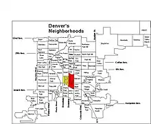 - ↑ "Denver Neighborhoods". Archived from the original on April 7, 2004.
