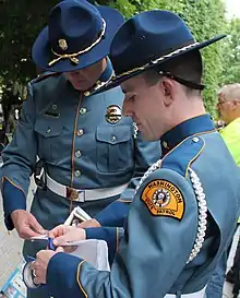 In 2007 the National Association of Uniform Manufacturers and Distributors named the Washington State Patrol the "Best-Dressed State Law Enforcement Agency" in the United States.[14] The State Patrol adopted a modified duty uniform in 2017.[15] Though visually similar to the State Patrol's former uniforms, the new uniforms were constructed of a breathable, sweat-wicking fabric, instead of wool.[15] According to the State Patrol, the modified uniform was adopted as it was easier to clean and more comfortable to wear.[15]