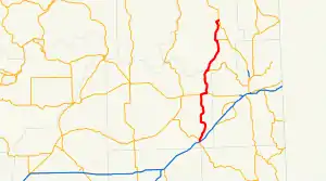 US 10 was replaced by the western extension of US 2 in 1946.[17][18] Three years later, in 1949, the Spokane River Bridge at Long Lake Dam was constructed and spanned from the southern terminus of SSH 3J to Lincoln County.[19][20][21] In 1957, PSH 3 and US 395 were moved to an eastern route bypassing Springdale, while SSH 3J was extended north towards Chewelah and a branch of the highway was added to Loon Lake, both along the former route of PSH 3.[22][23] SSH 3J was extended south to PSH 2 and US 2 in Reardan, east of the northern terminus of SSH 2G, in 1963.[24] During the 1964 highway renumbering, SR 231 was created from SSH 2G and SSH 3J and became concurrent with US 2; US 2 replaced PSH 2 and US 395 replaced PSH 3, while the branch of SSH 3J to Loon Lake became SR 292.[2][25][26] The Spokane River Bridge was added to the National Register of Historic Places on June 2, 1995 along with the rest of the bridges on the Spokane River northwest of Spokane, and the bridge was repaired in late 2008.[20][27][28] In the 1990s, the state proposed a jurisdictional transfer with Lincoln County to decommission the Sprague–Reardan section of SR 231.[29] The highway was later used to haul uranium waste by truck following attempts by WSDOT to force the contractor to fund safety improvements on its haul route.[30]