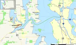 - ↑ Washington State Department of Transportation (2014). Washington State Highways, 2014–2015 (PDF) (Map). 1:842,000. Olympia: Washington State Department of Transportation. Puget Sound Area inset. Retrieved October 30, 2021.