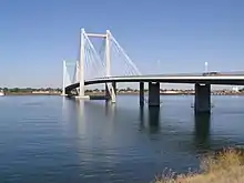 The Cable Bridge, which carries SR 397 across the Columbia River, was opened on September 16, 1978, and built using $30 million in federal, county, and city funding (equivalent to $106 million in 2022 dollars).[8][9] It replaced the "Green Bridge", which was built in 1922 and carried a section of the Inland Empire Highway (later part of US 410) until the opening of the Blue Bridge in 1954.[10][11][12]