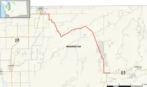State Route 547 begins at a junction with SR 542 in Kendall, located northwest of Mount Baker.[3] At the intersection, the highway is named Kendall Road and turns north towards the Canada–US border.[1][3] After passing Kendall Elementary School,[4] the route crosses Kendall Creek to enter Balford.[1][3] SR 547 turns northwest and passes the former Baker's Edge Golf Course, Peaceful Valley and Columbia before turning west and becoming Reese Hill Road as it traverses the north foothills of Sumas Mountain.[1][3] The highway turns north to become Hillview Road and later Sumas Road before curving west towards Sumas as Rock Road and Front Street before crossing the Sumas River into Sumas. The roadway ends at an intersection with SR 9, about 0.67 miles (1.08 km) south of the Canada–US border.[1][3]