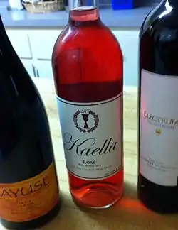 Washington wine is a wine produced from grape varieties grown in the U.S. state of Washington. Washington ranks second in the United States (behind California) in the production of wine.[3] By 2017, the state had over 55,000 acres (220 km2) of vineyards, a harvest of 229,000 short tons (208,000 t) of grapes, and exports going to over 40 countries around the world from the 940+ wineries located in the state.[4] While there are some viticultural activities in the cooler, wetter western half of the state, the majority (99.9%) of wine grape production takes place in the shrub-steppe eastern half.[5] The rain shadow of the Cascade Range leaves the Columbia River Basin with around 8 inches (200 mm) of annual rain fall, making irrigation and water rights of paramount interest to the Washington wine industry. Viticulture in the state is also influenced by long sunlight hours (on average, two more hours a day than in California during the growing season) and consistent temperatures.[6]