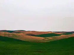 The Walla Walla AVA was established in 1984 with its boundaries amended in 2001. Mostly contained within Washington, a portion of this appellation does extend south into Oregon. Of the region's 303,500 acres (122,800 ha), nearly 1,110 acres (450 ha) were planted as of 2008.[3] Along with its wine, Walla Walla is known for its sweet onions, which is a local food and wine pairing favorite, especially the Merlot grown within the appellation.[11] The region is generally wetter than the rest of the Columbia Valley, receiving more than 20 inches (50 centimeter) of rain on average each year. The area between the town of Walla Walla east to the Blue Mountains is the wettest with each mile from the city eastward to the mountains seeing an addition inch of average rainfall.[10] The Walla Walla AVA contains at least four distinct soil profiles scattered across the valley – slackwater terrace, loess, river gravel and flood plain silt. The majority of Walla Walla's vineyards are located on a combination of slackwater terrace and loess. The silt and volcanic ash that make up the region's loess soils contain remnants from the eruption of Mount Mazama (which also formed the Crater Lake nearly 400 miles (640 km) away in Oregon).[17]