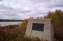 The Ducks Unlimited Monument as seen from the Saunders Lake section of the trail