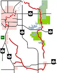 A map of the current Waskahegan hiking trail route circa 2007. The city of Edmonton is pictured at the top left of the map.