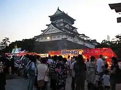 The event's budget is usually around 80,000,000 yen, most of which goes to supporting the city.[1][2] On average, around 1,500,000 people attend the event annually. Every year a theme is picked; in 2009, the theme was "Pride of Kitakyushu". Due to the participation of groups from around the city, it is possible to see many unique aspects of other festivals, such as floats from Wakamatsu-ku and Kurosaki or "light pyramids" from Tobata-ku. There are also others from outside of Kitakyūshū, such as the big snake float from Ōmuta, Fukuoka. The festival finishes with fireworks.