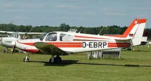 The Wassmer WA-80 Piranha is a French two-seat low-wing cabin monoplane trainer designed and built by Société Wassmer. Based on the same construction as the company's WA-50 four-seater, the WA-80 was a scaled down version. The prototype, registered F-WVKR, first flew in November 1975 powered by a 100 hp Rolls-Royce Continental O-200 engine. Wassmer appointed a receiver and suspended production in 1977 after 25 had been built.