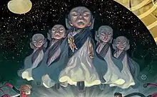 ![]() Watchers depicted in artwork for the cover of Original Sin # 8 (September 2014, Marvel Comics) Art by Julian Totino Tedesco | |
