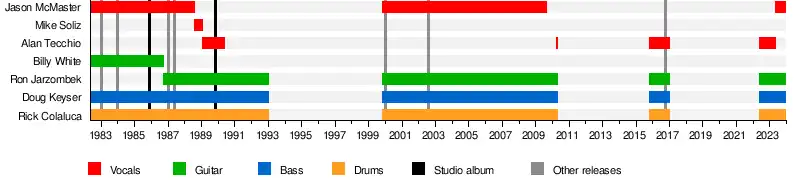 - Jason McMaster – vocals (1982–1988, 1999–2009, 2023–present)