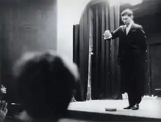 Yam was a name thought up by Brecht and Watts in late 1962 to act as an umbrella project 'for all manner of immaterial, experimental, as yet unclassified forms of expression.'[9] Specifically intending to provide a platform for 'art that could not be bought,' the earliest Yam events involved mailing event cards and other objects stamped with the word 'Yam', or variations, to friends. Designed to increase anticipation, the project reached a head with a month-long series of events in May 1963, in New York, Rutger's University and George Segal's farm. The Yam Festival was held on a farm in South Brunswick, New Jersey on May 19, 1963, to actions and happenings by artists including Dick Higgins, Allan Kaprow, La Monte Young, and Wolf Vostell. The festival was organized as a wide-ranging series of events taking place throughout the month, whose main objective was to bypass traditional gallery outlets, giving artists and 'receivers' greater freedom. Wolf Vostell made here his happening TV Burying.[10]