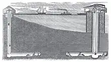 - ↑ "Engineer's Report. Tunnel and Crib Construction". Annual Report of the Dept. Of Public Works. Chicago, IL: Chicago Dept. of Public Works. 20: 15–18. 1896. Retrieved June 28, 2016.