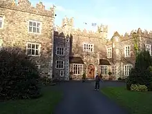The current castle is a Gothic-style house built in 1895 for Gerald Purcell-Fitzgerald (1865-1946)[3] which incorporates the fabric of an earlier (pre-1845) house, and parts of the medieval (pre-1645) tower-house. The designs were prepared by Romayne Walker and supervised by Albert Murrary (1849 - 1924). The construction is in unrefined rubble stone with fine cut-stone quoins and window frames and topped with Irish-style battlements.[4]