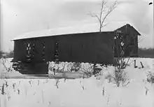 The Waterford Covered Bridge is a Town lattice truss covered bridge spanning LeBoeuf Creek in Waterford Township, Erie County in the U.S. state of Pennsylvania. The bridge was built in 1875, and is 85 feet 11 inches (26.2 m) in length. The Waterford Covered Bridge is one of two remaining covered bridges in Erie County, along with the Harrington Covered Bridge. The bridge is also the only Town lattice truss bridge in the county and one of only 19 in Pennsylvania. It was documented by the Historic American Buildings Survey in 1936 and was listed on the National Register of Historic Places in 1980. In 2011, the bridge was closed due to its deteriorating condition.