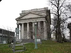 Watertown Masonic Temple is a historic building and former Masonic hall located in Watertown in Jefferson County, New York. It was constructed in 1914 as a meeting hall for a local Masonic lodge and is a three-story building in the Neoclassical style, with a masonry and steel structure. The front of the building features a large prostyle temple front with six Doric columns supporting a triangular pediment.[2]