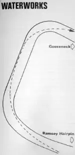- ↑ The TT Mountain Course (second edition), by Fred Hanks p.29 Waterworks Section. "Tight right. Even tighter right again." 1975, A TT Special publication. Accessed 22 December 2015