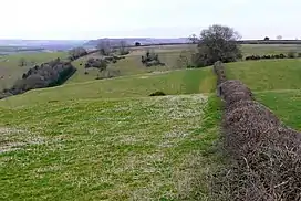 View across Watts Hill, close to the C12, with Whitcombe Bottom just beyond.