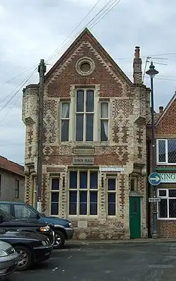 In the mid-19th century, a group of local businessmen decided to form a company to raise funds for the erection of an events venue in the town: the site they selected was on the north side of what was then the Market Place.[2] The foundation stone was laid by Lady Walsingham of Merton Hall on 26 April 1853.[3] The building was designed by Edward Buckton Lamb in the Gothic Revival style, built in red and buff bricks with stone dressings and was completed later that year.[1] The name chosen for the building, Wayland Hall, recalled the location of the town and its town hall within the ancient Wayland Hundred.[4]