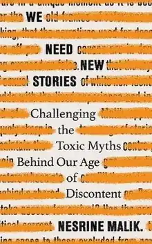 We Need New Stories is a non-fiction book written by journalist and author Nesrine Malik in 2019.[1] It discusses "toxic myths" on matters such as freedom of speech, political correctness, racial and identity politics, and national myths (particularly in relation to the United Kingdom and the United States, and how these impact decision-making), discussing and how these concepts have been misrepresented often to oppose progressive causes and encouraging readers to question accepted norms.[2][3]