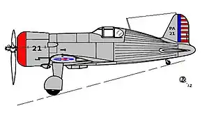 Derived from an original proposal made in 1932, the XP-34 was based on a design by air racer Jimmy Wedell, who was considered, "one of the most noted race plane designers of its day".[1] The aircraft was a direct result of the development of Wedell's most successful designs, the Model 44 and Model 45.[2] The forward fuselage was intended to be metal, the after part and control surfaces covered in fabric.[1]