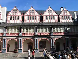 Weilburg was for many years a residence town and governmental seat of the House of Nassau-Weilburg. Even today, the inner town is still characterized by buildings from that time. The most important building is Schloss Weilburg, dating back to the 14th century. It was converted in the 16th and 18th centuries. The Renaissance parts, known as the Kernschloss (main or central palace) is counted among the best preserved Renaissance palaces in Hesse. After the Baroque expansion under Johann-Ernst of Nassau-Weilburg, it takes in almost half of the Old Town, and including the Protestant Schlosskirche from the early 18th century.