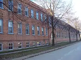 The northernmost portion of the Union Street building was constructed in 1905/06, and is a two-story, flat-roofed, 30-bay structure with segmentally-arched four-over-four light windows and a corbelled brick cornice. The central portion of the Union Street building, built in 1909, is similar, but sits on a high basement, lifting it above grade. The southernmost portion of the Union Street building, built in 1917, is a fourteen-bay extension of the central wing, and reflects the same design elements, but stands three stories high. However, the elevations of this portion not facing Union Street are dissimilar to the front elevation, and have wide bays of almost floor to ceiling windows separated with brick piers.[6]