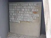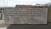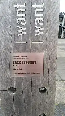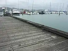 The quotations for Jack Lasenby, Joy Cowley, James McNeish and Elizabeth Knox were unveiled by the then patron, Governor-General Sir Jerry Mateparae,[13] in a ceremony on the waterfront on 20 March 2013.[14][15] These were designed by award-winning Wellington architect Fiona Christeller.[16]