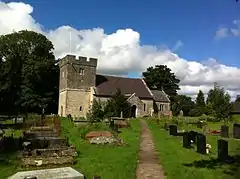 The church sits to the north end of a knot of houses, mostly recent, and within the middle of these lies the Great House. The Great House, is a two-storey 18th-century building of modest features consisting of three, three-bay units, the centre of which is higher than the sides.[9] Prisk Farm, which is situated about a mile to the west, once boasted an elaborate modelled plaster ceiling, of 17th- or 18th-century design. Unique amongst the farm houses of the area, the ceiling was lost when it collapsed c. 1989.[9]