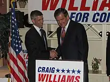 Craig Williams announced his candidacy for the U.S. House of Representatives in Pennsylvania's 7th congressional district (map). on January 16, 2008.[3] He was endorsed by several high-profile organizations,[4] including The Philadelphia Inquirer.[5] He also received endorsements from, among others, vice presidential nominee Sarah Palin,[6] Pennsylvania Senator Arlen Specter, former Pennsylvania Governor Tom Ridge and former New York City Mayor Rudy Giuliani, all of whom also campaigned for Williams.[7][8] His campaign was ultimately unsuccessful, losing to the incumbent Joe Sestak.[9]