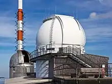The observatory was founded in December 1939 by Karl-Otto Kiepenheuer as a solar observatory for the Luftwaffe. The recording of solar activity was supposed to enable the most accurate forecast possible of the optimal frequencies used for military communications. After the Second World War the observatory was funded by the US forces for the same purpose. Since 1949 the facility has belonged to the University of Munich. In the 1960s the observatory was enhanced with a coronagraph, a device that enabled research to be carried out on the atmosphere of the Sun. Due to increasing air pollution and research priorities switching back to night-time astronomy, scientific observations of the Sun were ceased in the 1980s. Since 1988 the facility has become purely an observatory; the dome of the coronograph is only used today for viewing purposes. Searches were conducted from the Wendelstein for extrasolar planets by evaluating occultations and research is carried out on variable stars in dwarf galaxies using an 80-cm telescope and CCD cameras. In 2012, the 80-cm telescope was replaced by an instrument with a two-metre aperture.[5]