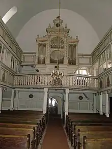 The German church was painted at this time in the neo-gothic style, which replaced its original late Baroque colours. Towards the end of the 19th century, the western vestibule of the German church was renovated. The original roof construction was preserved but the timber framing was replaced with a brick construction. A new organ from the firm Schlag & Söhne from Schweidnitz (Schlesien) was added in 1899. New windows were put in at the same time.