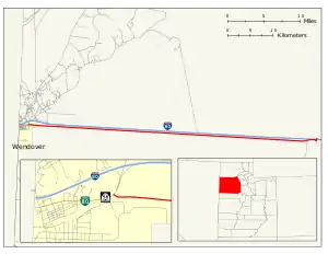 The Wendover Cut-off, also called the Wendover Road or Wendover Route, is a two-lane highway in the western part of Tooele County in the U.S. state of Utah. Stretching 40.3 miles (64.9 km) from Wendover to Knolls across the Bonneville Salt Flats, a part of the Great Salt Lake Desert, the cut-off was once part of the primary link between the Nevada state line and Salt Lake City. In 2012, between 240 and 250 vehicles used the cut-off near its western terminus in Wendover on an average day.