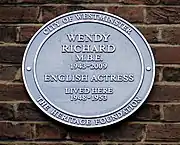- ↑ "Plaque unveiled for Wendy Richard". BBC News. 6 July 2009. Retrieved 31 May 2022.